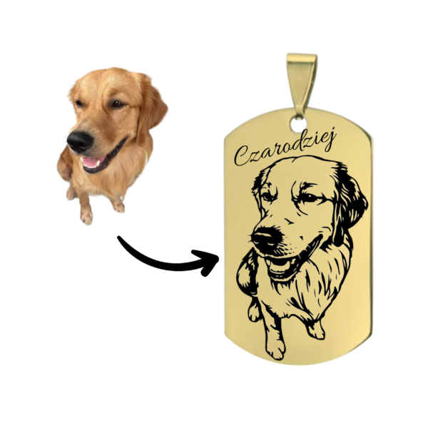 Stwórz wyjątkową pamiątkę z wizerunkiem swojego pupila! Ten elegancki brelok wykonany jest ze stali nierdzewnej w kolorze złotym i ozdobiony precyzyjnym grawerem przedstawiającym obrys pupila na podstawie przesłanego zdjęcia. To minimalistyczna, a zarazem niezwykle osobista ozdoba, którą możesz mieć zawsze przy sobie.