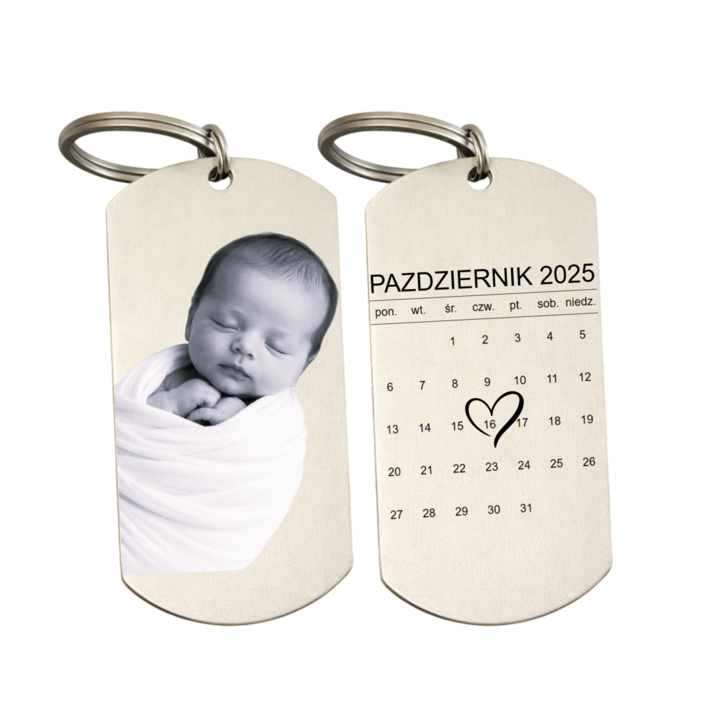 Zatrzymaj najważniejsze chwile w wyjątkowej formie. Nasz personalizowany brelok z laserowym grawerem to niepowtarzalna pamiątka, która łączy elegancję, trwałość i osobisty charakter. Na jednej stronie umieszczamy precyzyjnie grawerowane zdjęcie dziecka wraz z imieniem, a na rewersie kalendarz z zaznaczoną ważną datą – np. dniem narodzin, chrztu lub innym szczególnym momentem.
