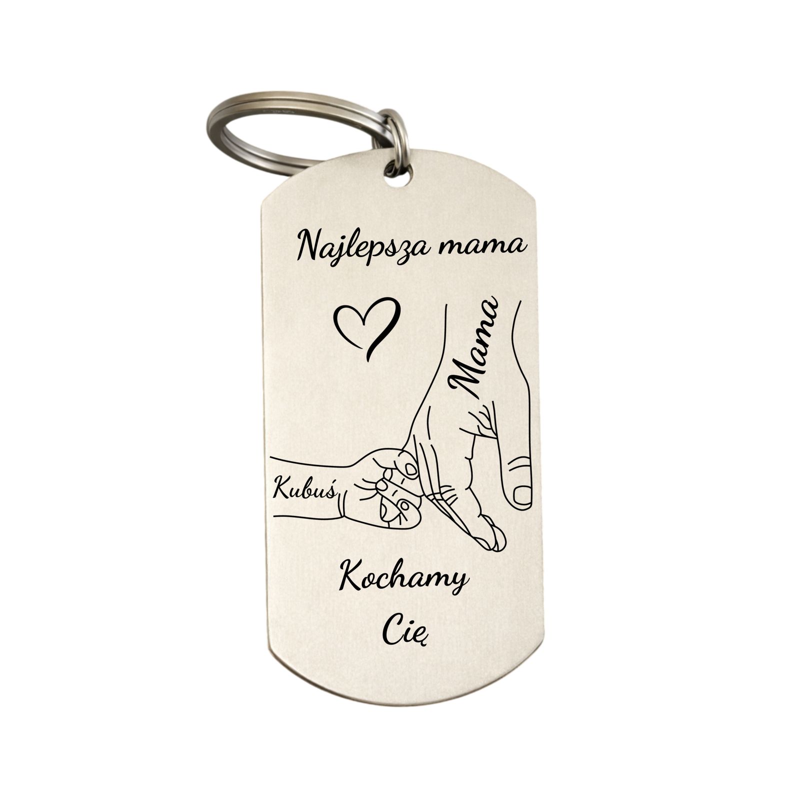 Elegancki brelok dla mamy z minimalistyczną grafiką dłoni oraz możliwością dodania imienia mamy i od 1 do 5 imion dzieci. To wyjątkowa, personalizowana pamiątka, która symbolizuje miłość i rodzinną więź. Dostępny w kolorze srebrnym lub złotym, zapakowany w eleganckie pudełko – idealny prezent na Dzień Matki, urodziny lub święta. 💛