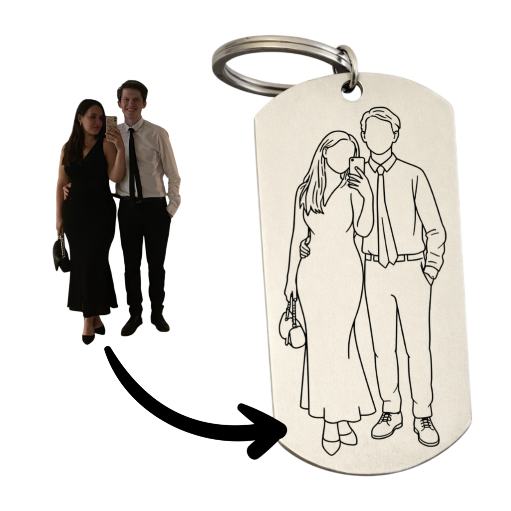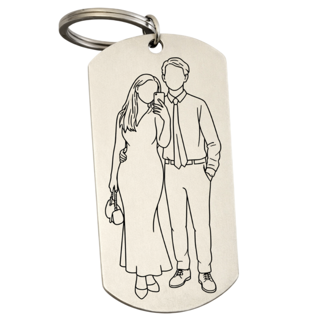 Zamień swoje ulubione zdjęcie w elegancki, minimalistyczny brelok, który zawsze będzie blisko Ciebie. Na podstawie przesłanej fotografii tworzymy precyzyjną grafikę liniową, oddającą sylwetki i charakter postaci – idealny pomysł na prezent pełen emocji.